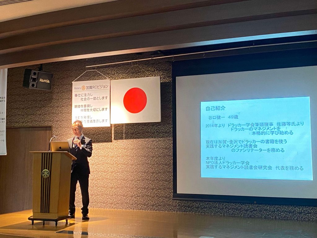 2024.11.11 会場監督委員会, 例会 会場監督委員会担当例会 令和6年11月7日(木)山代温泉ゆのくに天祥にて第2395回例会開催 諸事お祝い後、会場監督委員会担当例会 谷口健一会場監督委員長より、演題「ドラッカー流 人のマネジメント」にて卓話頂きました♪ 共有:クリックして Twitter で共有 (新しいウィンドウで開きます)Facebook で共有するにはクリックしてください (新しいウィンドウで開きます)クリックして Google+ で共有 (新しいウィンドウで開きます) 関連 Tweet Share +1 Hatena Pocket RSS feedly Pin it 投稿者: kagarotaryadmin 会場監督委員会, 例会 石川第2グループ都市連合会開催前の記事 2024-2025国際ロータリー第2610地区石川第2…次の記事